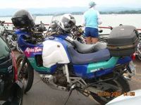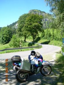 Heute war den der Tag X, es sollte leider nach Hause gehen. Aber warum soll der Rückreisetag denn langweilig sein? Keine Ahnung. Nachdem wir die Twin am Vorabend schon gepackt hatten, wurde noch schnell eine Abschlusstour geplant. Nach dem begleichen der Rechnung, und einer herzlichen Verabschiedung, ging es noch einmal in Richtung Österreich. Ein paar Kurven wollten wir uns noch auf dem Weg nach München gönnen. Bei Lochau (A) ging es wieder in die Berge. Die Strecke kannten wir ja noch von der Tour zum Fukarjoch, aber diesmal gab es dort eine Baustelle. Hier kam es dann auch zur ersten ernsthaften Fastzwischenfall. In der Baustelle über zwei dicke Schläuche gefahren und die Karre kippte nach rechts. Zum Glück konnte ich das Motorrad, mit Ladung und Frau, vor dem Aufschlag abfangen. Nach dem Schreck ging es dann weiter. Wir fuhren über das Oberjoch, nach Sonthofen, Oberstdorf, Schloss Neuschwanstein und über den Starnbergersee nach München. War wirklich ein toller Tag, und die Eindrücke nahmen fast Überhand. Der Besuch bei Schloss Neuschwanstein war aber ein reiner Zufall. Eigentlich wollten wir nur eine kleine Pause machen, aber plötzlich stehen wir zwei Kilometer vor dem Schloss. GPS und Radfahrer sagten uns, das dies Schloss Neuschwanstein sei. Im Fernsehen sah das immer viel größer aus. Von hier ging es dann noch für eine Eis zum Starnbergersee, und dann weiter zur Bahnverladung nach München. Eigentlich sollte die Verladung um 20:15 Uhr sein, aber kaum angekommen konnte ich schon auf den Autozug drauf. In die Stadt wollten wir mit Gepäck und Motorradsachen nicht. Also mussten wir bis zur Abfahrt knappe vier Stunden überbrücken. Mit den ganzen Motorradfahrern war das aber kein Thema. Es wurde viel gequatscht, und die eine oder andere Hofenkaltschale genossen. Was das Verladen schneller ging, das dauerte die Zugeinfahrt länger. Der Zug hatte in München 40 Minuten Verspätung, kam aber in Düsseldorf pünktlich an. Jetzt erst war der Urlaub vorbei!